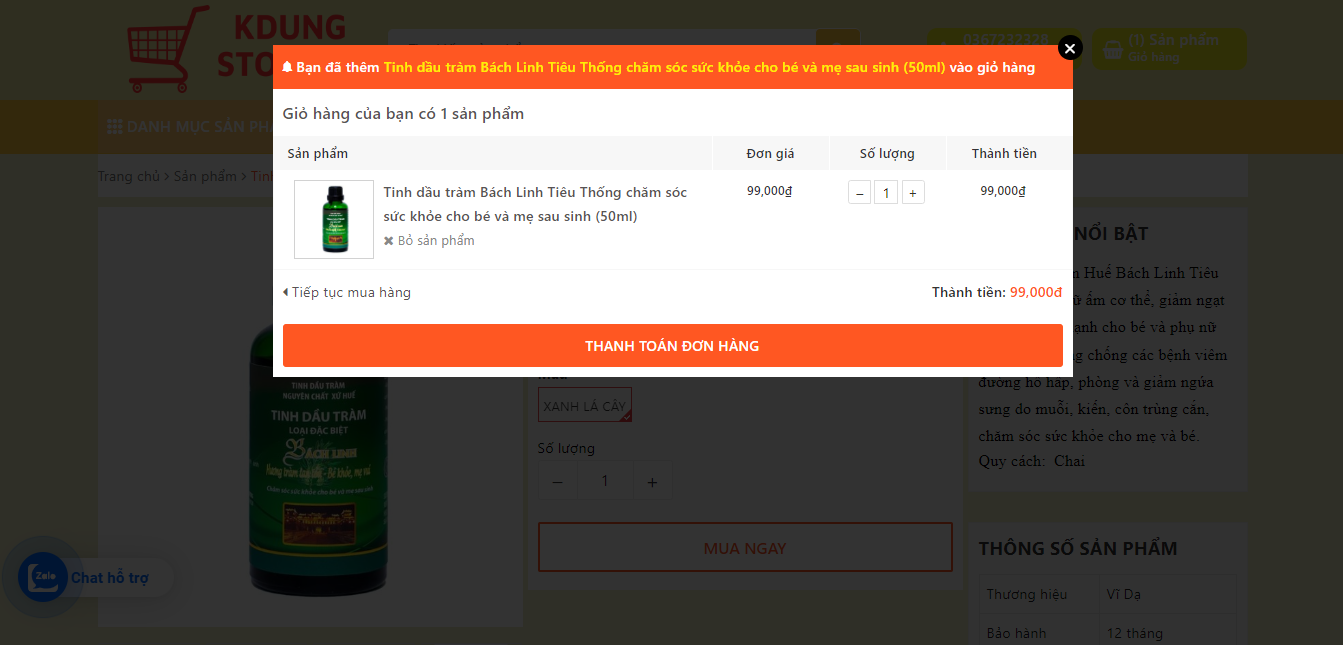 Bước 2 : Lựa chọn sản phẩm cần mua và nhấn Mua ngay