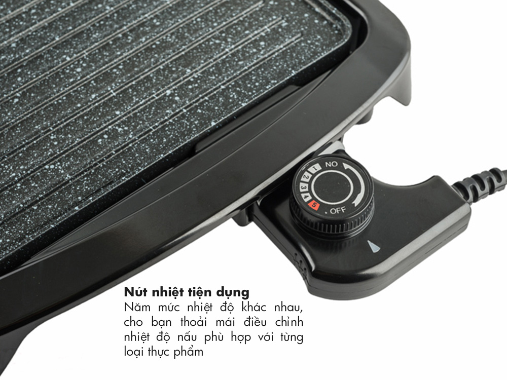Bếp nướng Nagakawa 3101 được thiết kế một núm xoay giúp bạn có thể dễ dàng điều chỉnh nhiệt độ sao cho phù hợp với từng món ăn. Với các mức nhiệt từ 1 - 5 (trong đó 5 là mức nhiệt lớn nhất), bạn chỉ cần xoay núm tới mức nhiệt mong muốn, bếp sẽ cung cấp nhiệt lượng cần thiết cho từng khâu nướng khác nhau, giúp thức ăn không bị cháy xém.