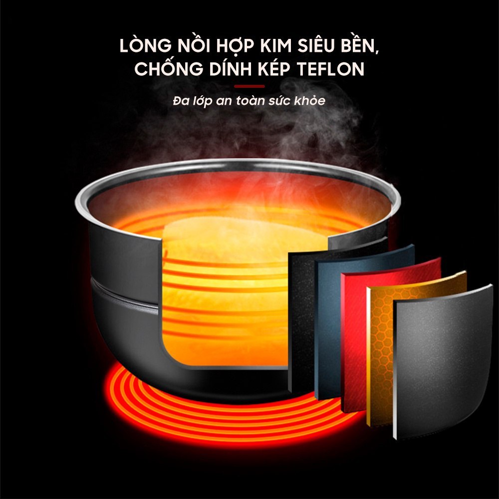 - Vệ sinh nồi dễ dàng nhờ có lớp chống dính và nắp nồi làm bằng thép không gỉ