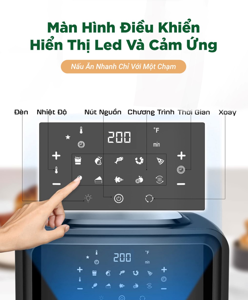 – Màn hình điều khiển hiển thị Led và điều khiển cảm ứng