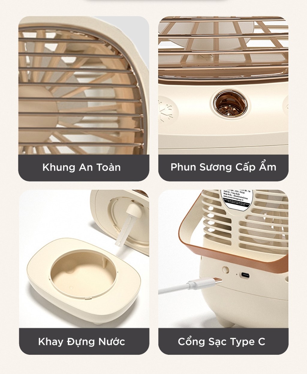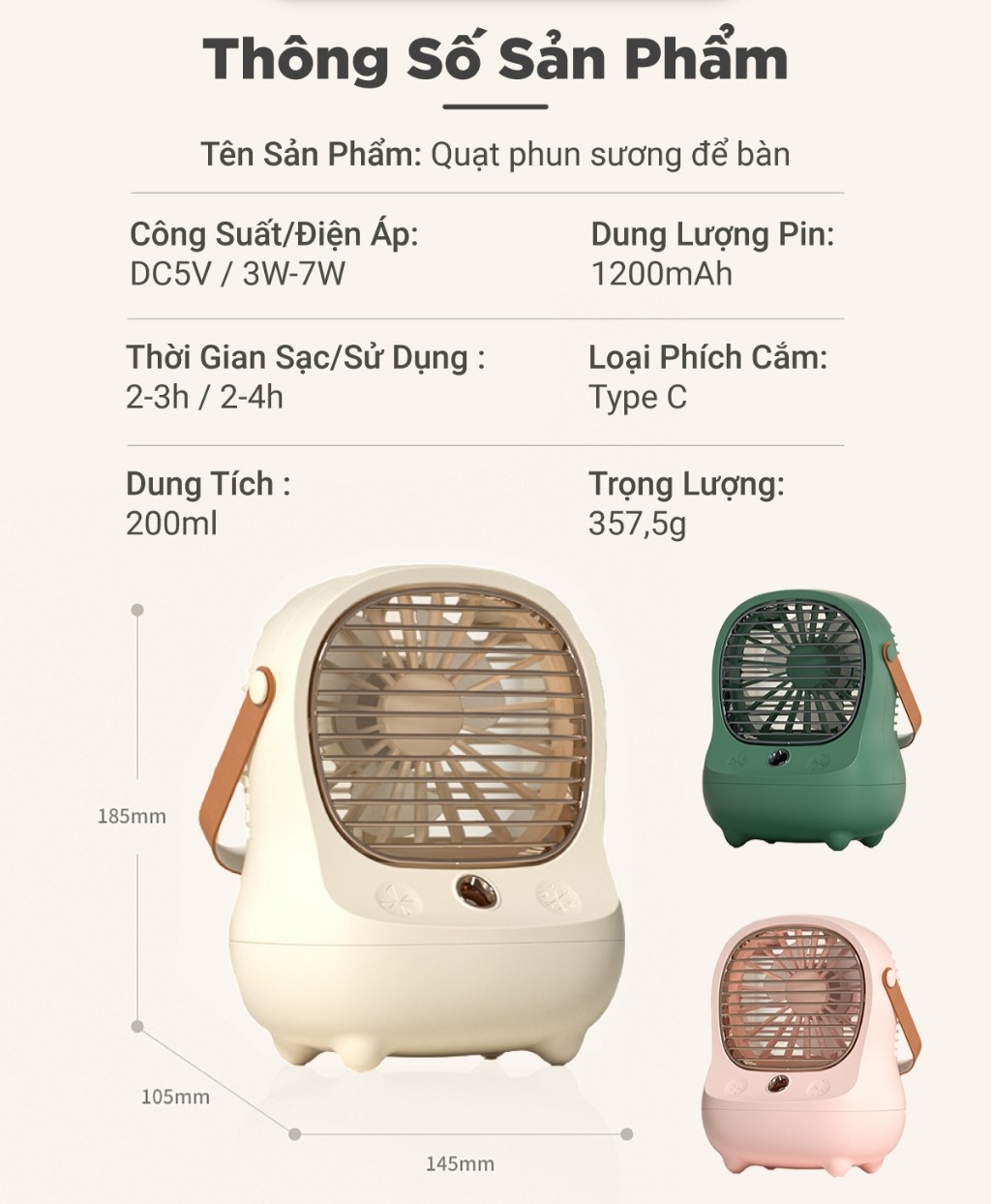 Quạt Phun Sương Để Bàn SMARTCHOICE 3 Chế Độ Gió Nút Cảm Ứng Pin 1200mAh Dung Tích 200ml bảo hành 6 Tháng